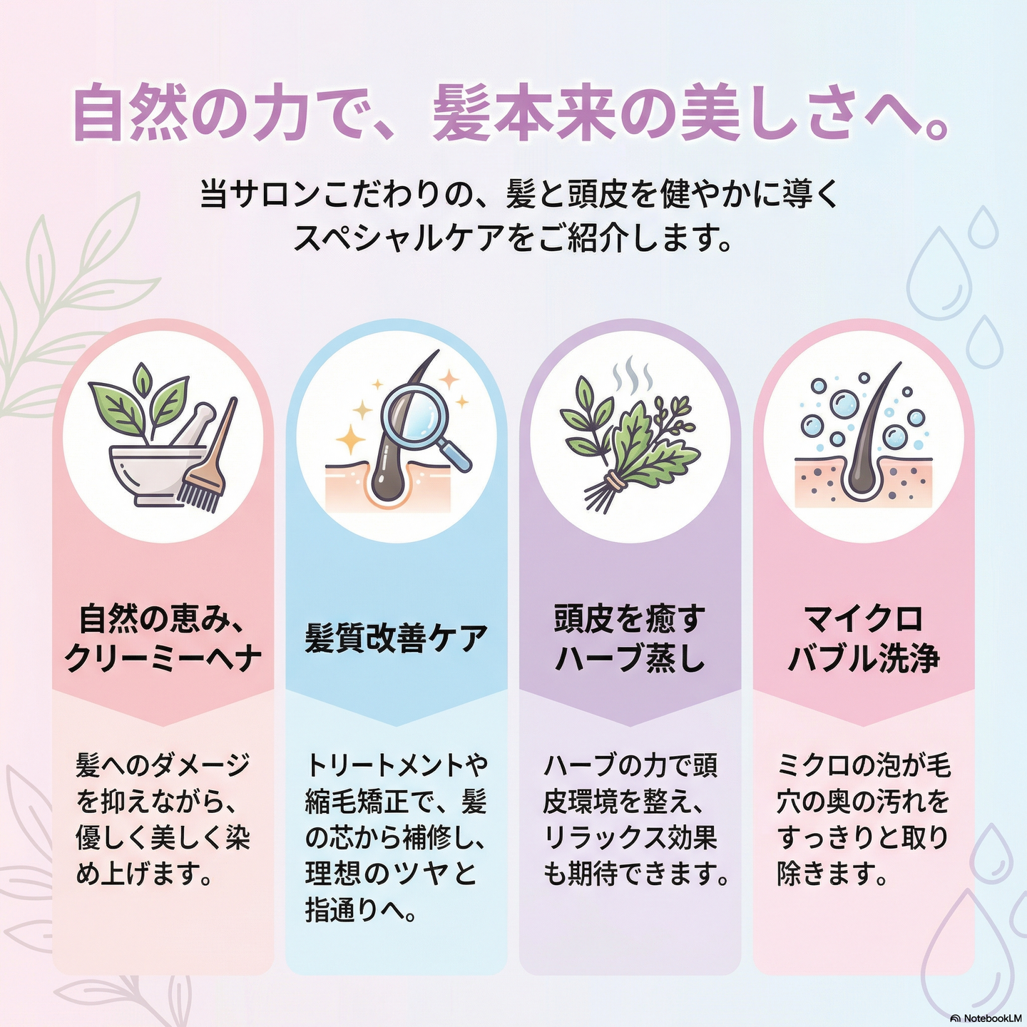 ⚠️髪質改善トリートメントだけの場合、マイクロバブル洗浄・シャンプー・ブロー(¥3000〜)は別料金です。