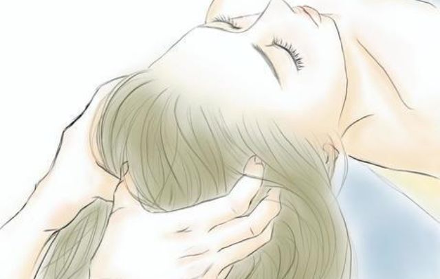 ②頭皮と髪にアムラエキスを塗布してマッサージ