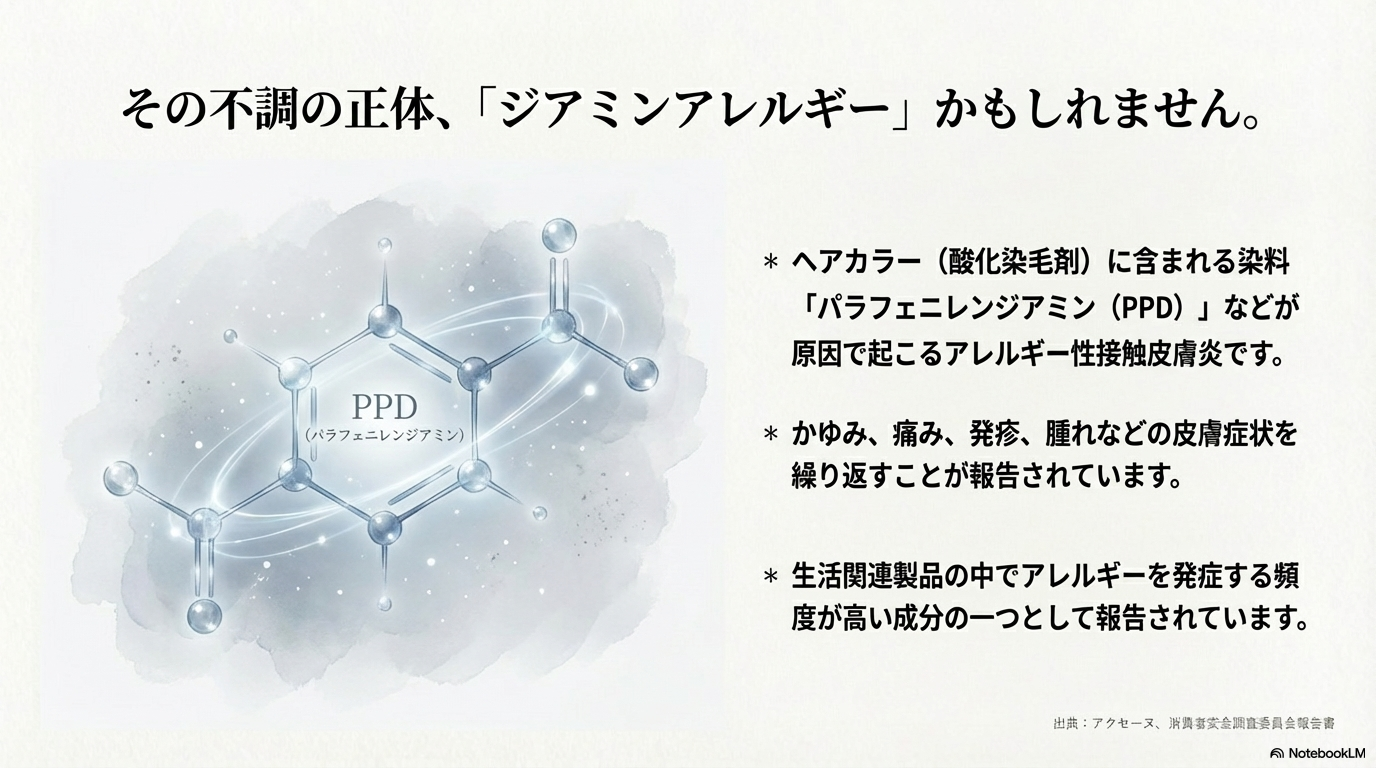 石油由来のシャンプー(界面活性剤)や化学染料のヘアカラーは頭皮のバリア機能を破壊すると言われています。アレルギー性皮膚炎などを引き起こしてフケやかゆみの原因になります。放置していると抜け毛の原因に。