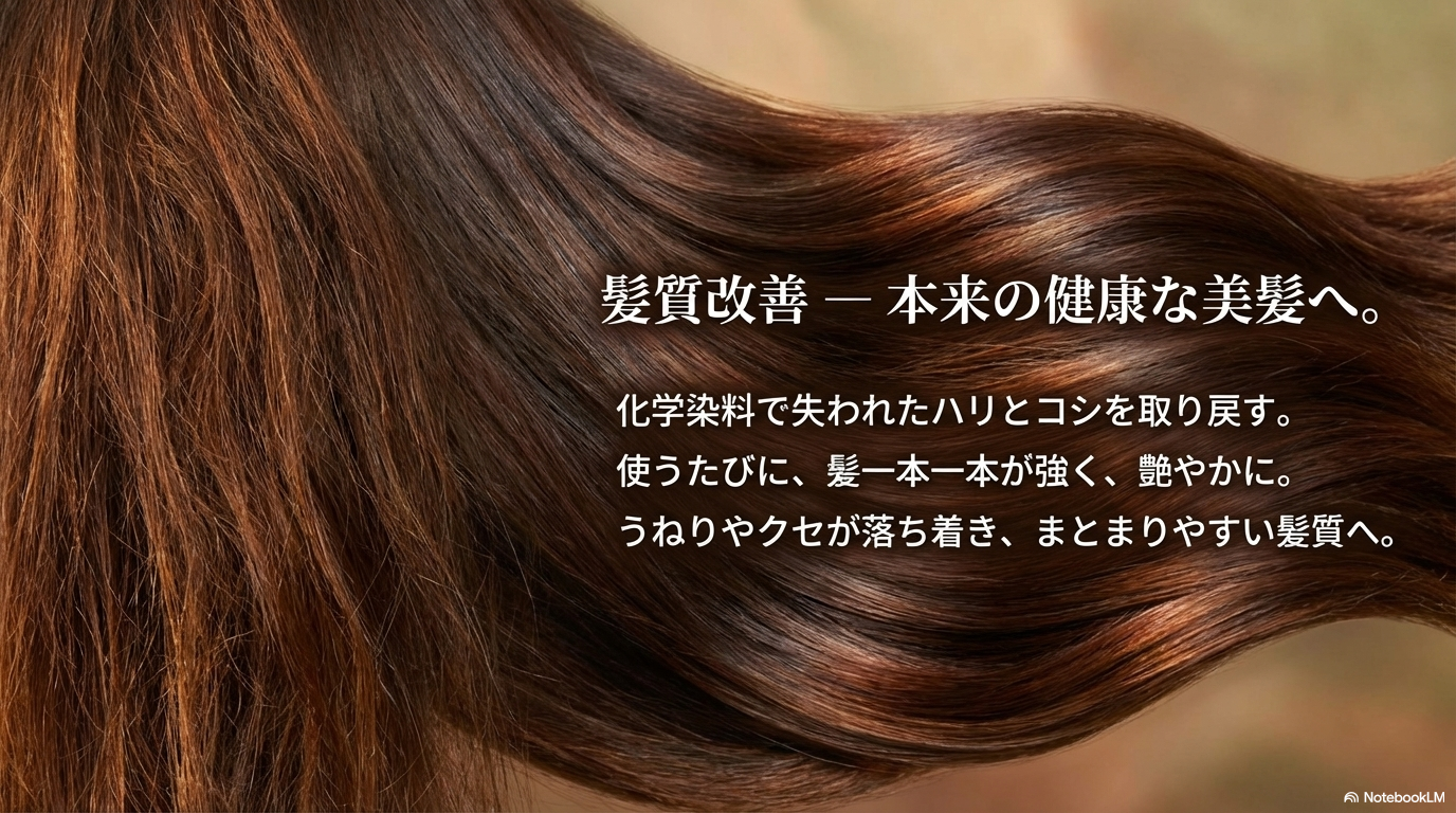 ヘナの成分のタンニンが毛先に定着するのでクセ毛の種類によっては収まりのいいまとまった髪質になる人もいます。長年続けることで変化していくケースが多いです。