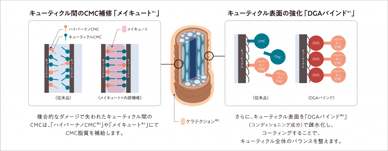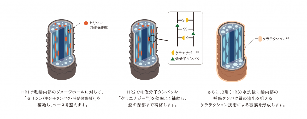 高分子活性型ケラチンを髪に補充してCMCでシールド。
